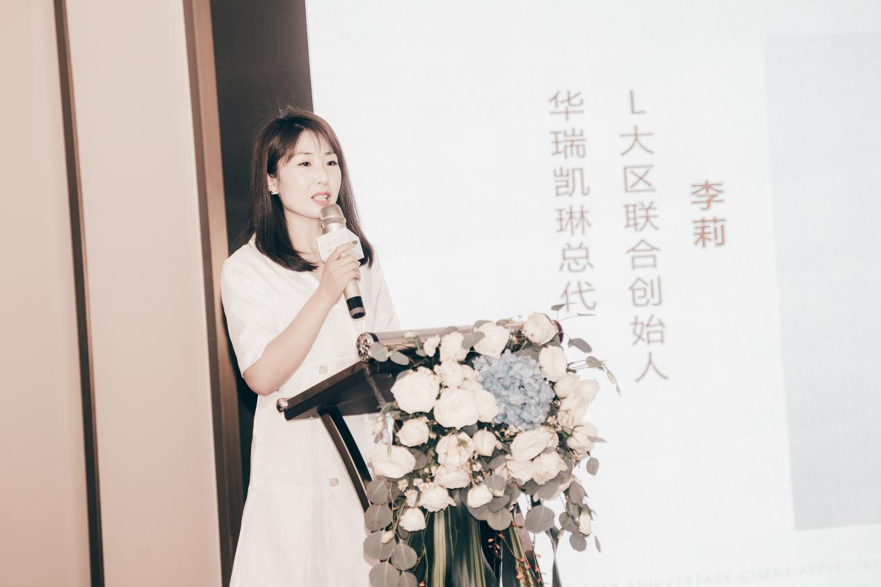 华瑞凯琳L大区创始人李莉也向在场嘉宾发表致辞,介绍了其所在大区品牌取得的傲人战绩,以及分享个人的创业经验。她表示,自10年前引进华瑞凯琳品牌,品牌就强大的品质和功效赢得了越来越多消费者的青睐,知名度和销售额不断提升,接连创造增长奇迹。